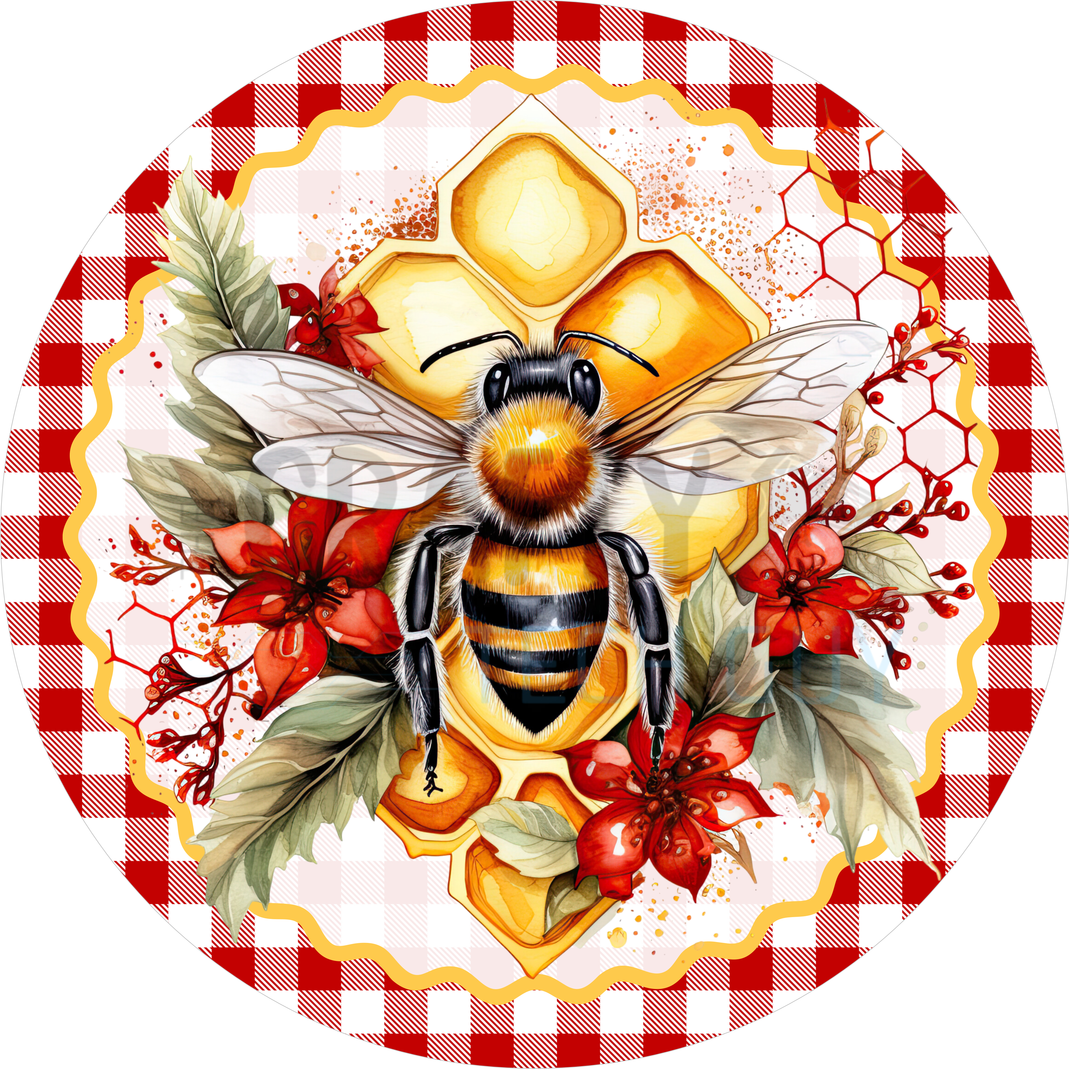 Christmas Teddy Bear Wreath Sign – Holly & Santa Suit Design