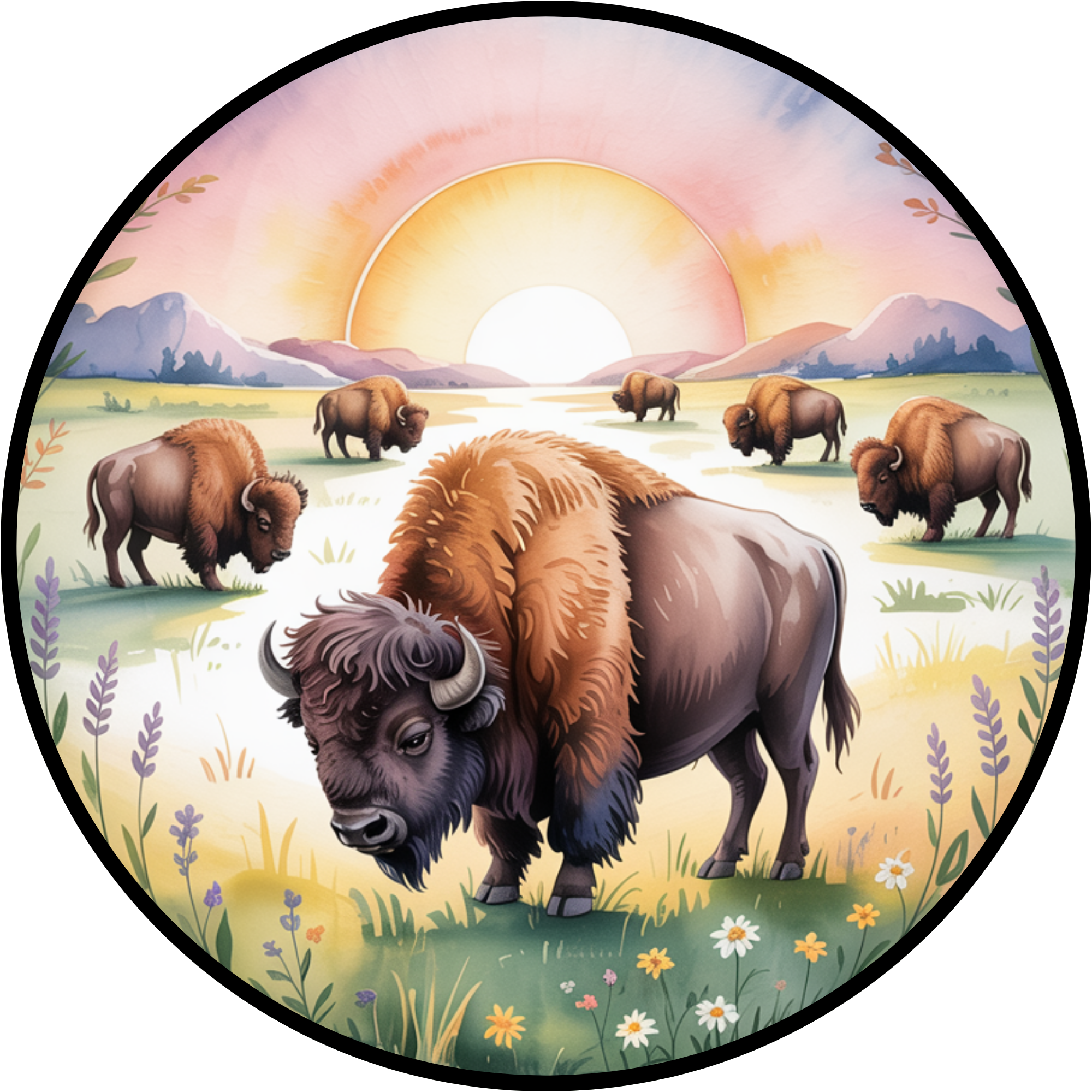 Buffalo Sunrise Prairie Sign – Peaceful Western Wreath Sign for Rustic Decor