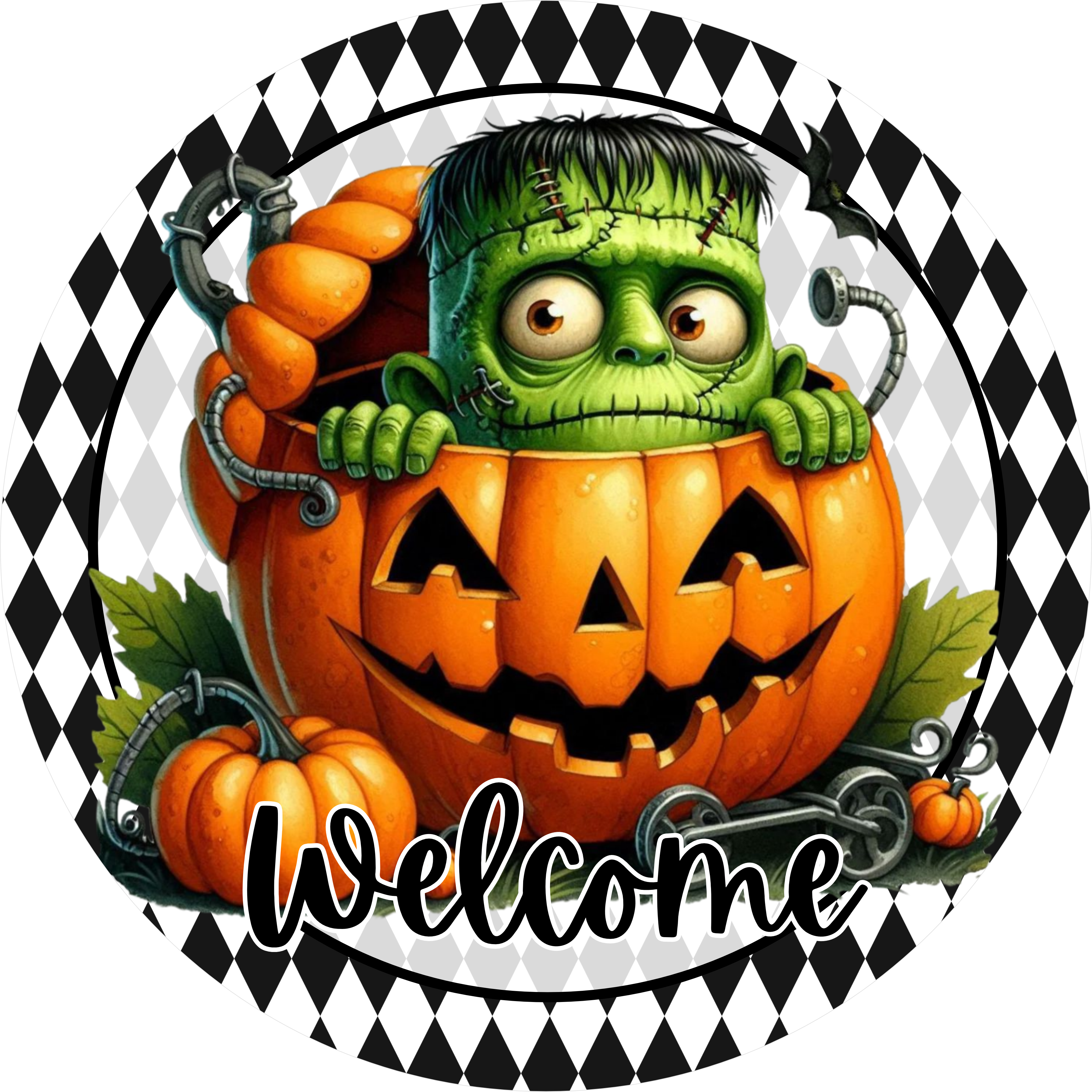Creepy Stitched Mouth Pumpkin Sign, Grinning Jack O’Lantern Halloween Wall Decor, Spooky Fall Art