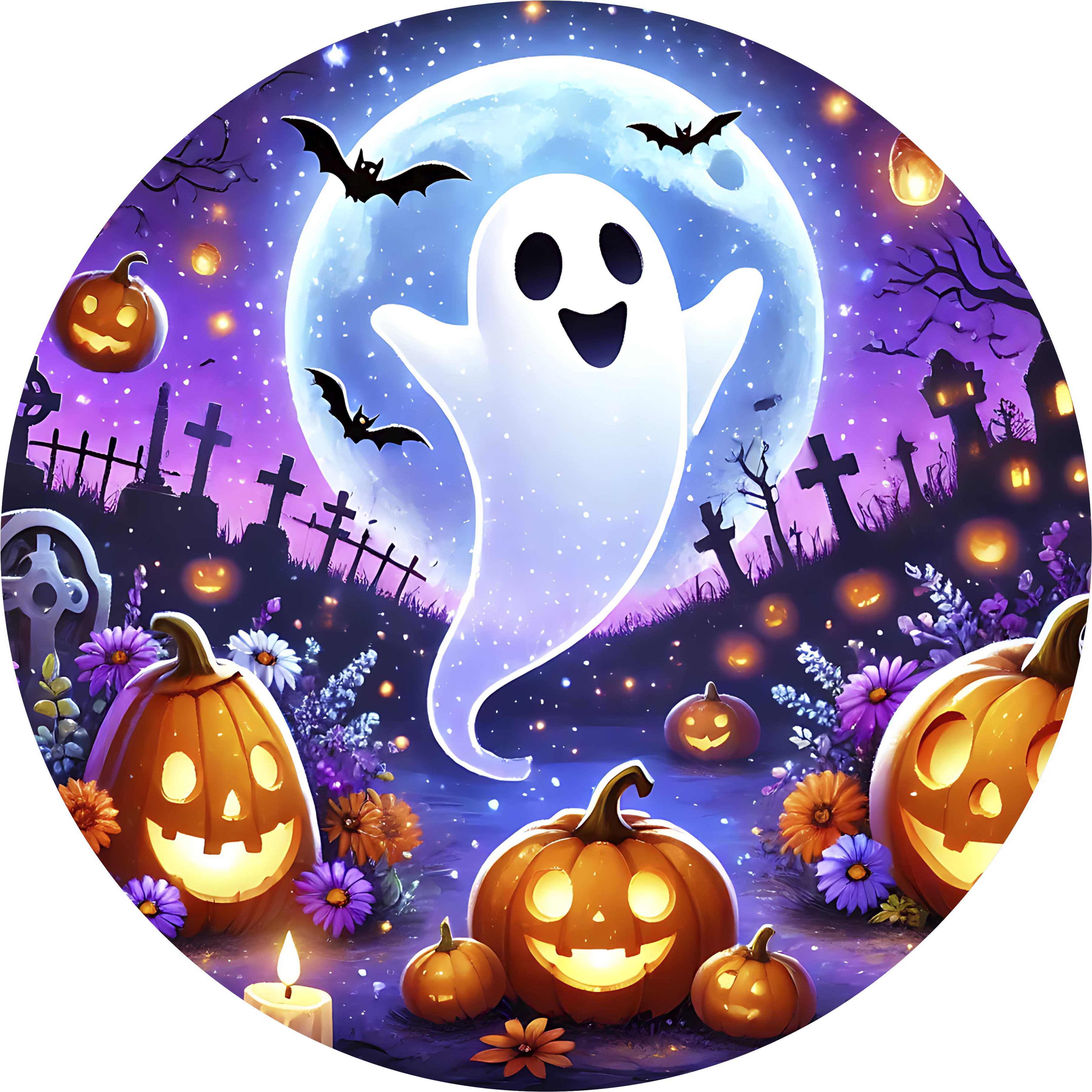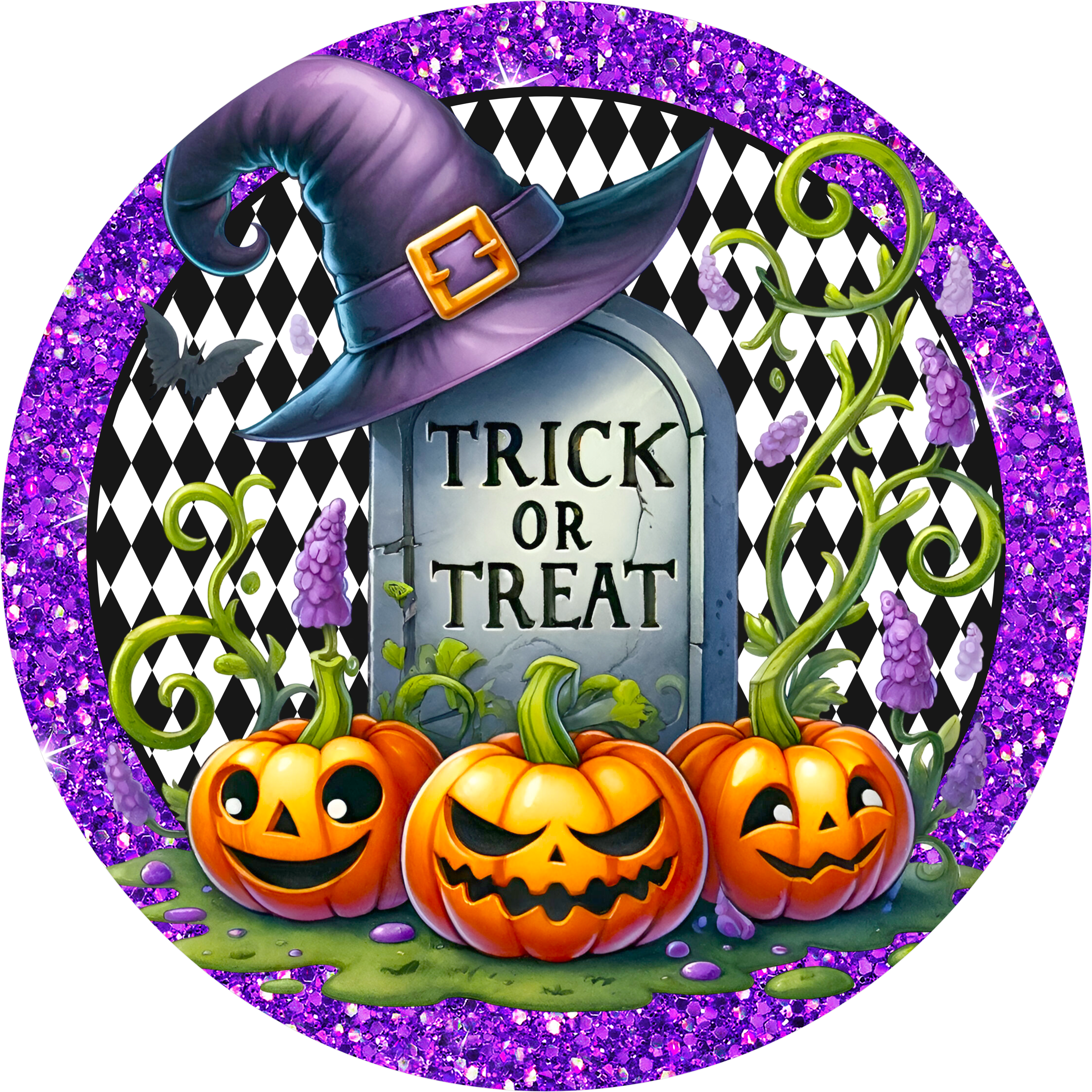 Cute Halloween Ghost Sign, Purple Glitter Candy Decor, Kawaii Pumpkin Trick or Treat Wall Art