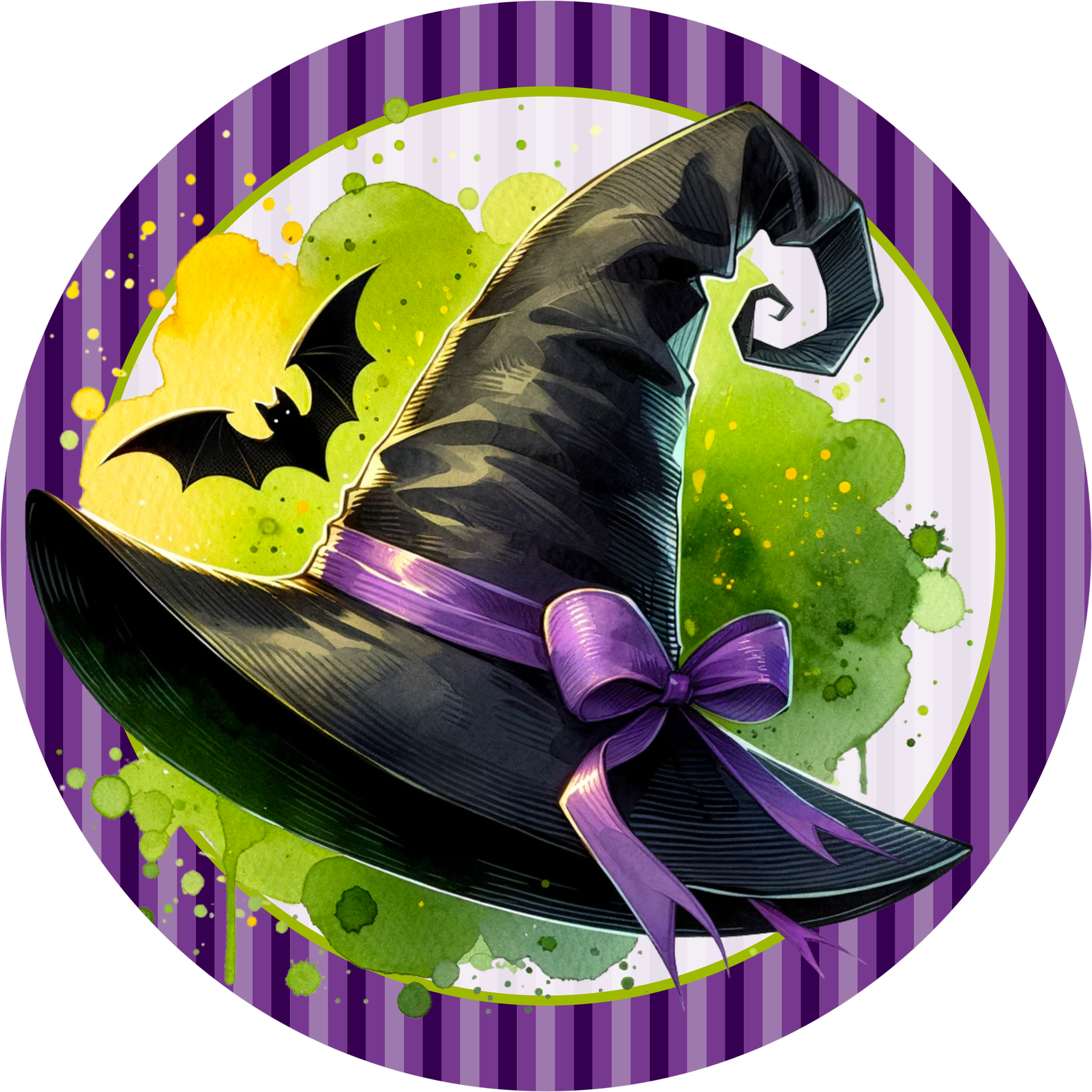Colorful Sugar Skull Halloween Sign, Day of the Dead Witch Hat Decor, Pink and Green Fall Wall Art