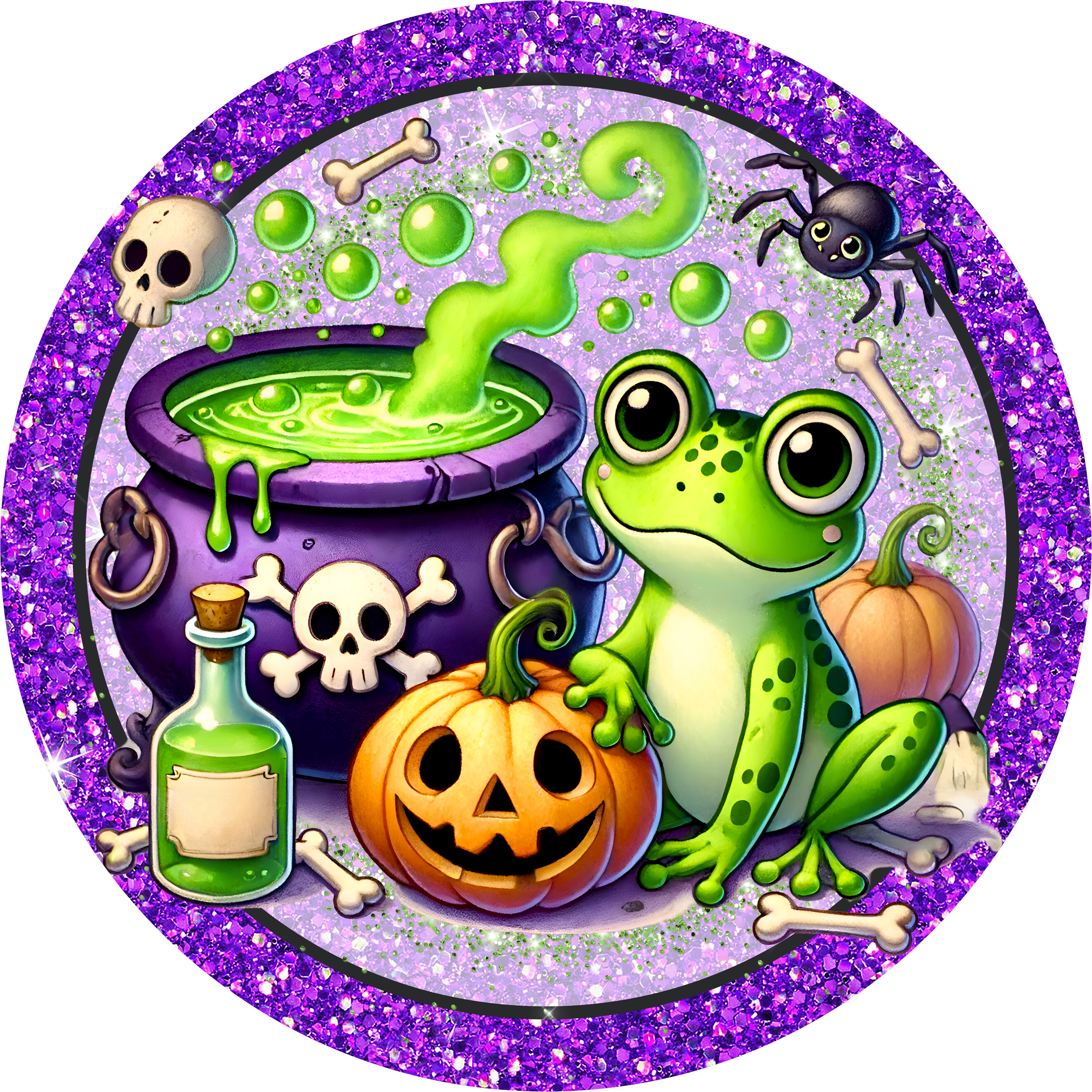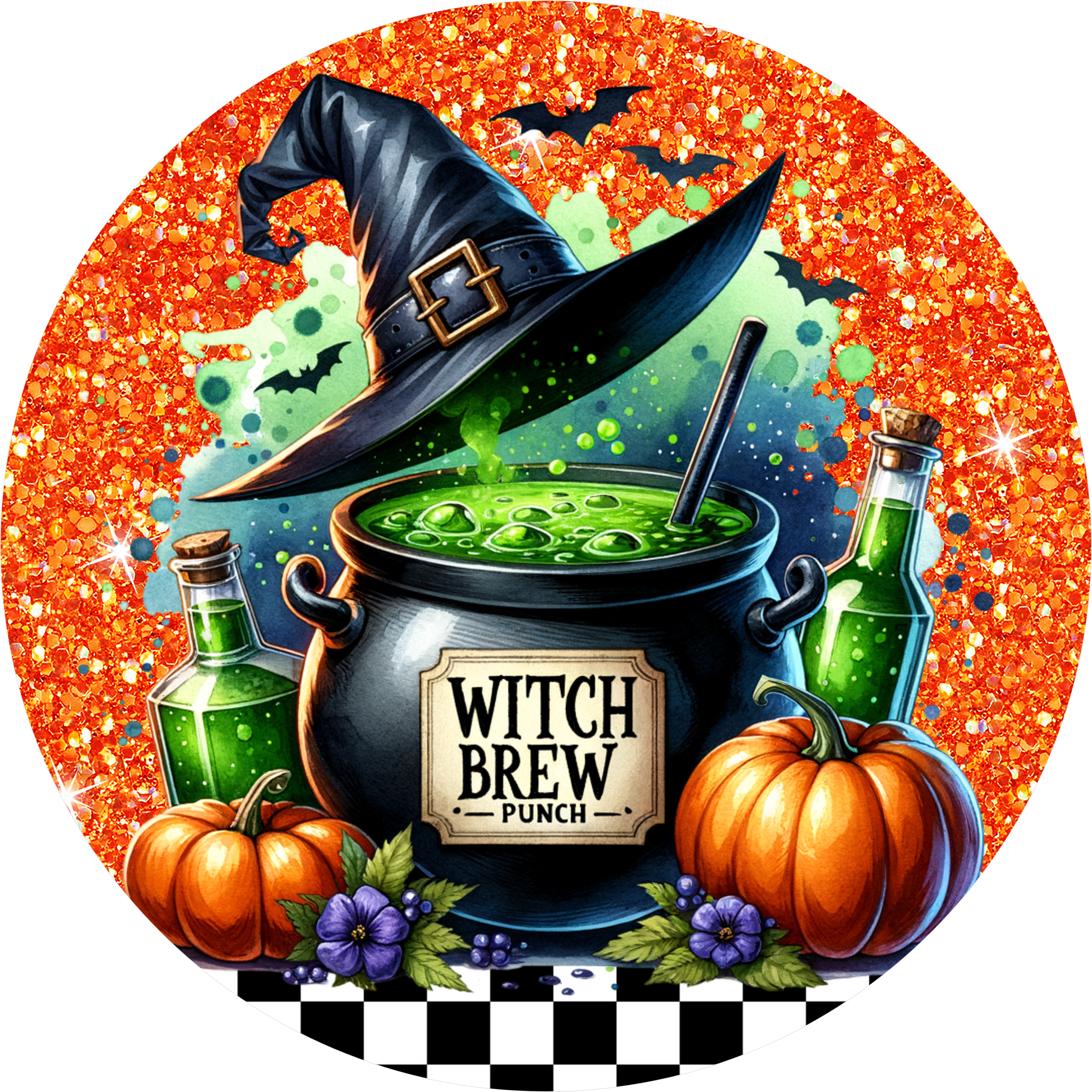 Cute Witch Ghost Halloween Sign, Sparkly Cauldron Potion Decor, Kawaii Pastel Spooky Wall Art