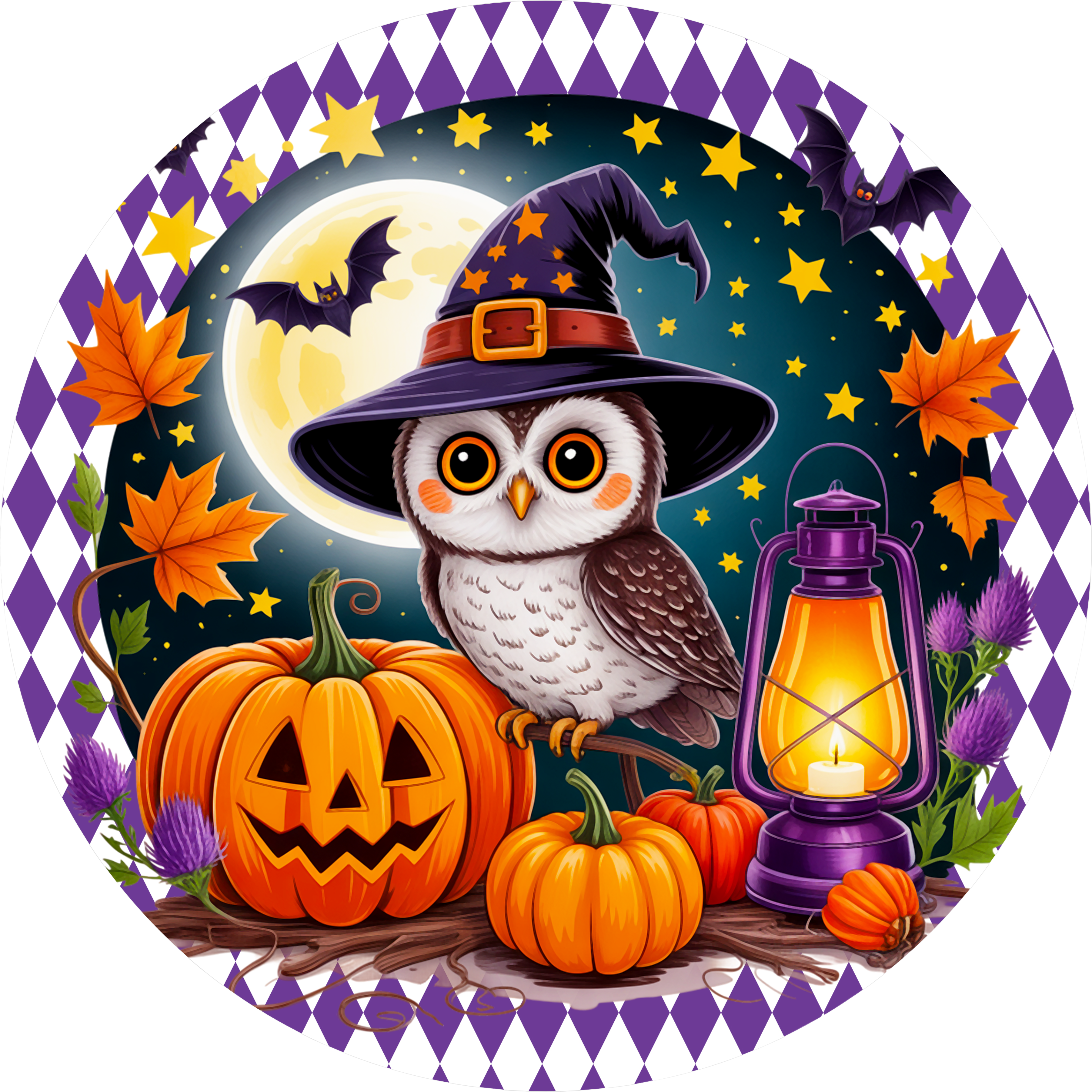 Cute Halloween Graveyard Sign, Owl Ghost Pumpkin Wall Art, Orange Plaid Spooky Fall Decor