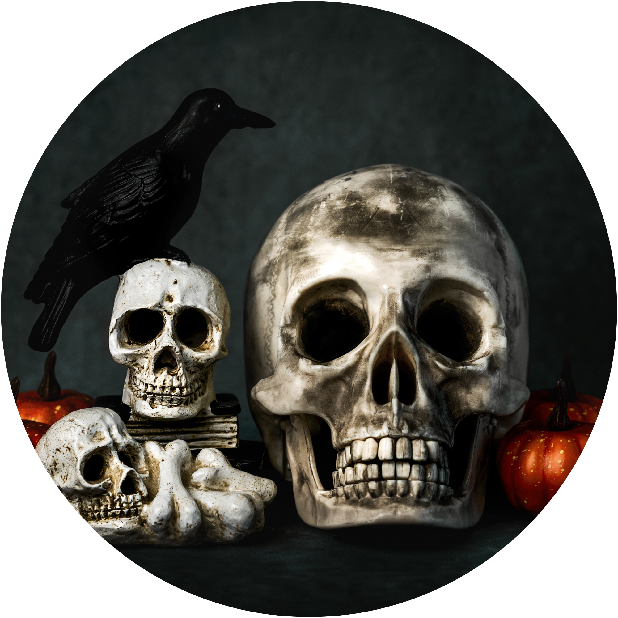 Raven and Skulls Halloween Wreath Sign, Gothic Crow and Bones Spooky Decor