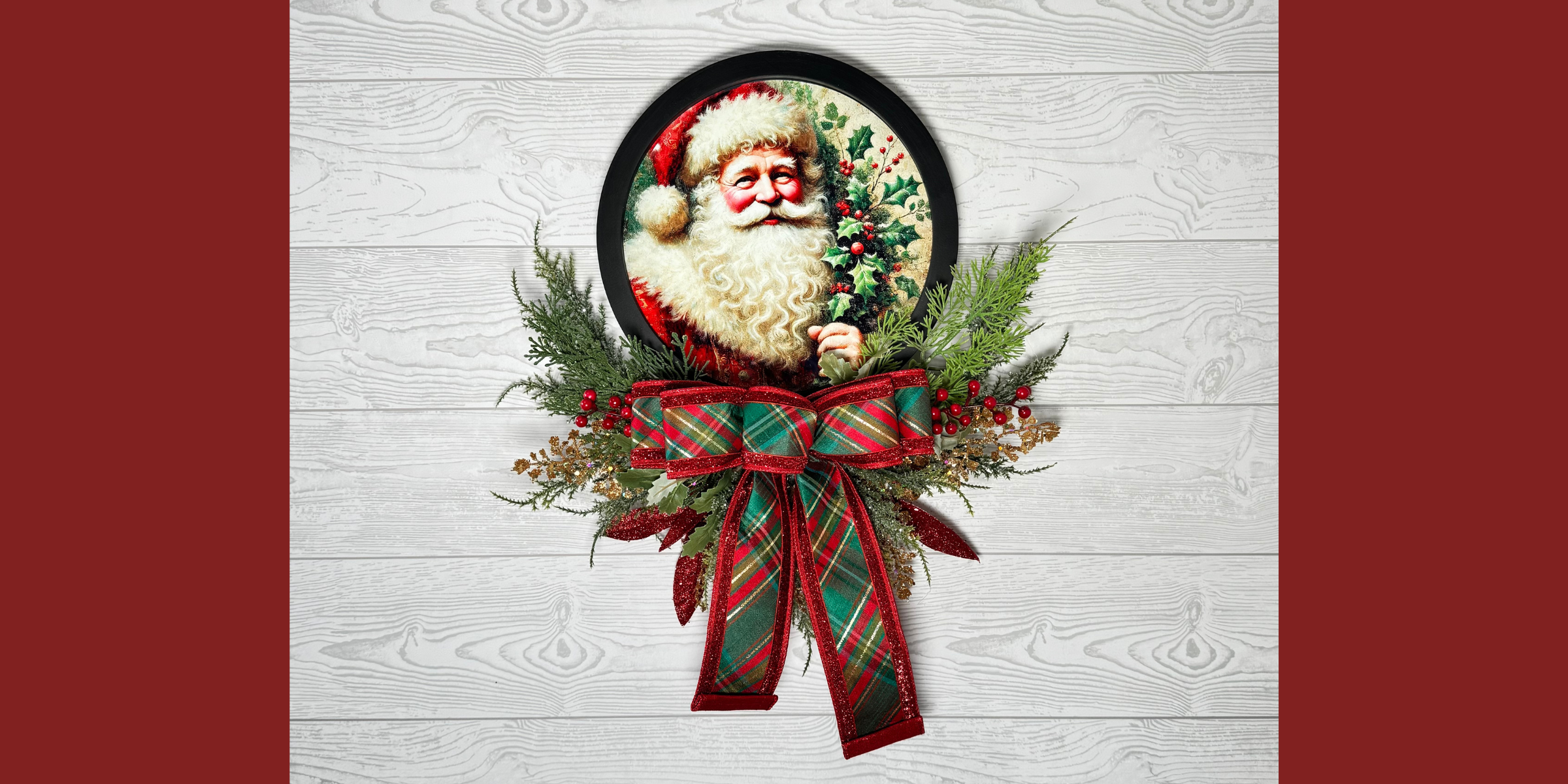 FrameFlair Kit Featuring Vintage Santa Sign | Classic Christmas DIY Floral Frame Kit with Stick-e-Stake™