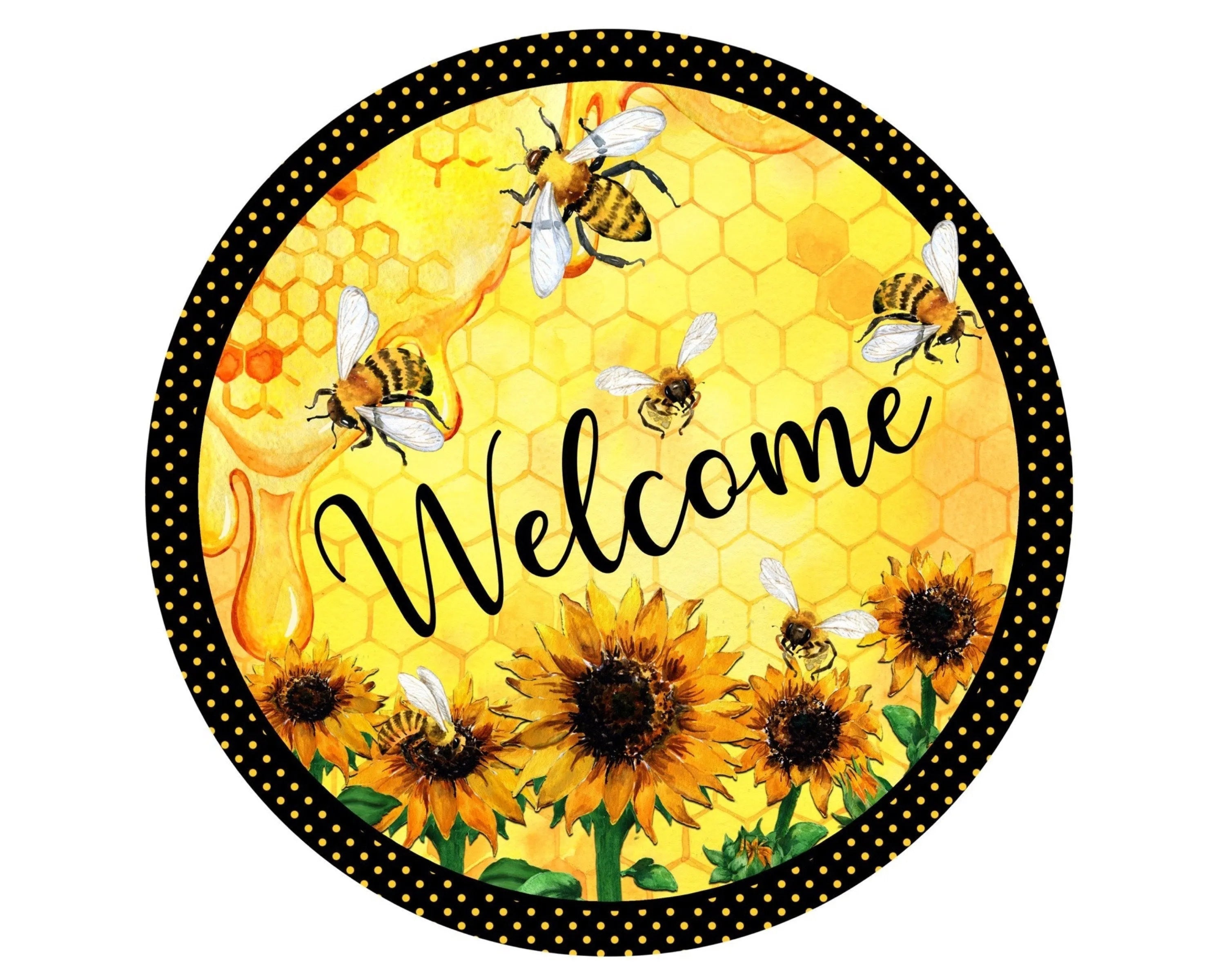Letrero de corona de girasol con abeja, letrero de panal, letrero de corona de granja, letrero de corona de lunares, coleccionista de abejas, coleccionista de girasoles, letrero de bienvenida
