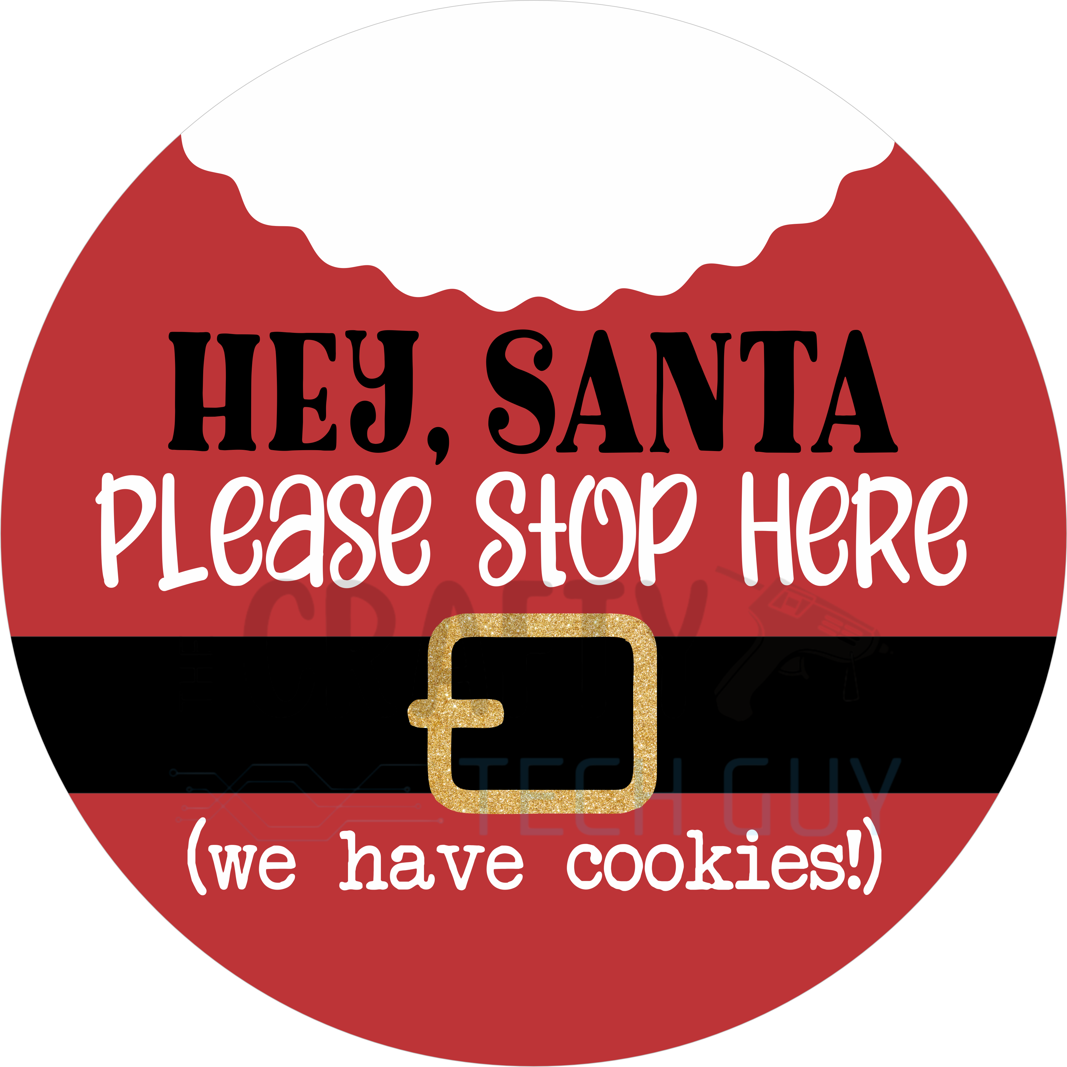 Letrero "Hola Santa", "Por favor, detente aquí, tenemos galletas", traje de Papá Noel, decoración navideña para coronas festivas y exhibiciones para puertas de entrada.
