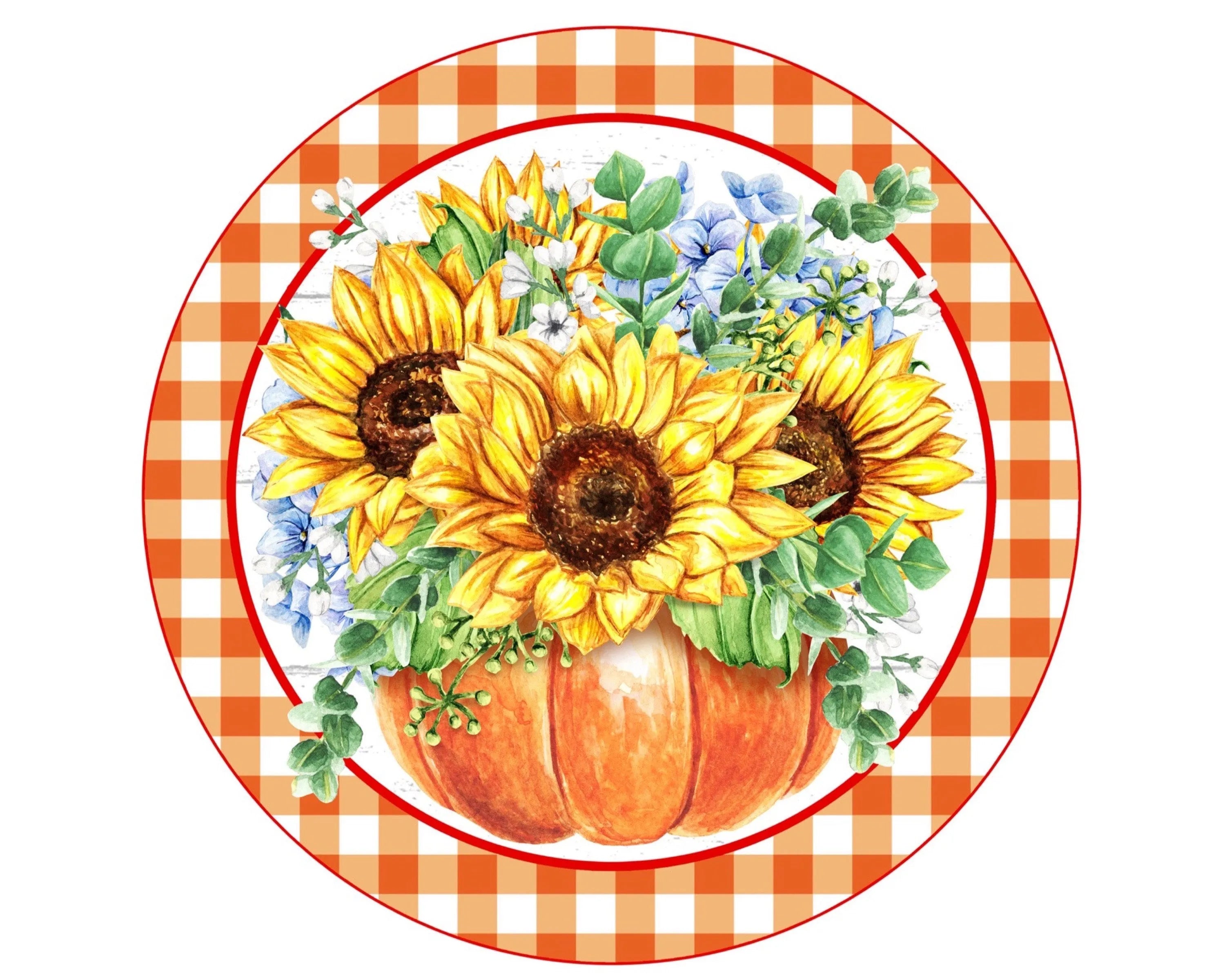 Letrero de corona de otoño, accesorio de corona de calabaza de otoño, decoración de calabaza y girasol, fiesta de calabaza, fiesta de otoño, letrero de otoño de granja