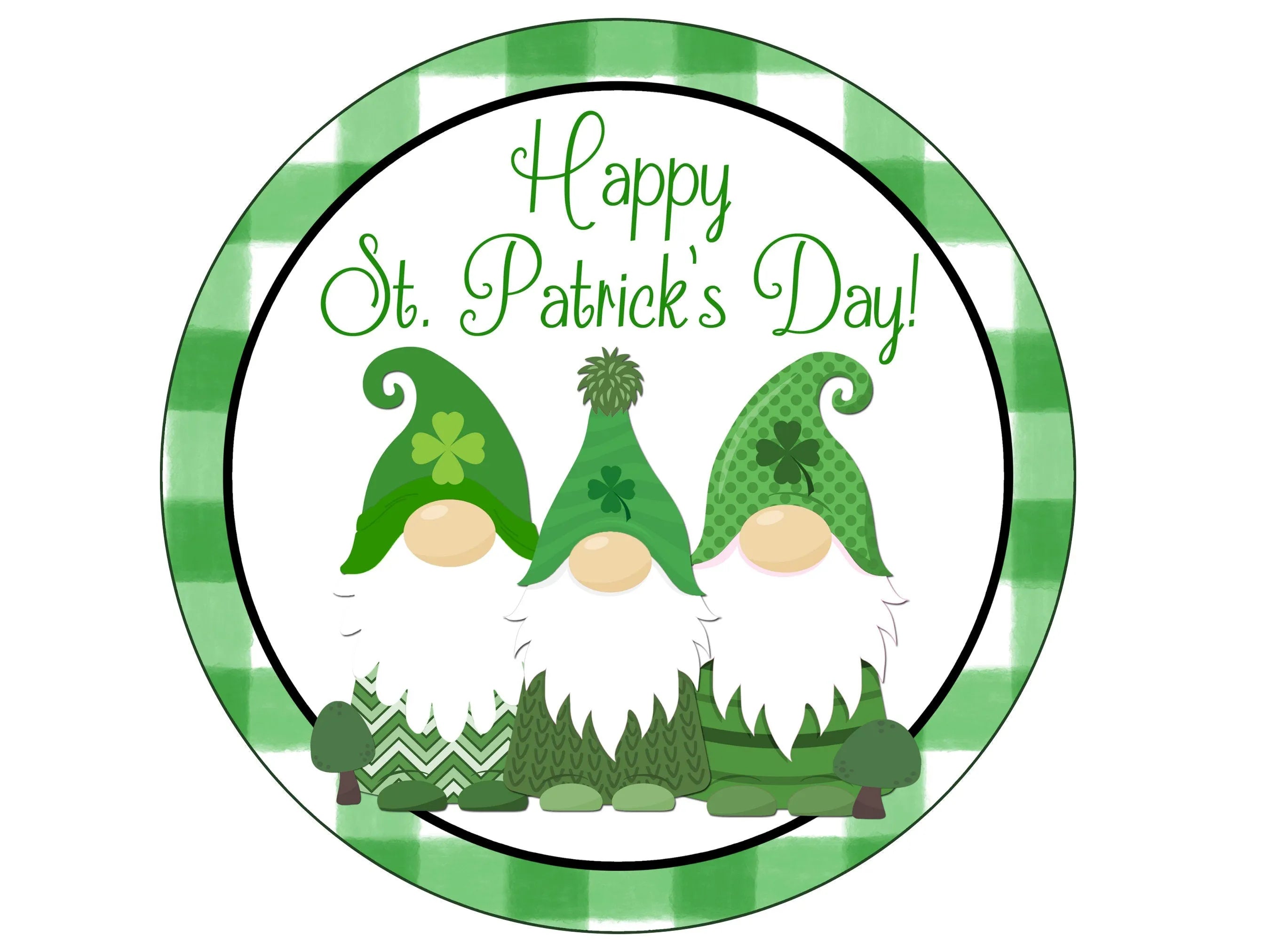 Letrero de corona del Día de San Patricio con amigos gnomos y mucha suerte, arte de pared con cuadros de búfalo de amigos gnomos, letrero para marzo