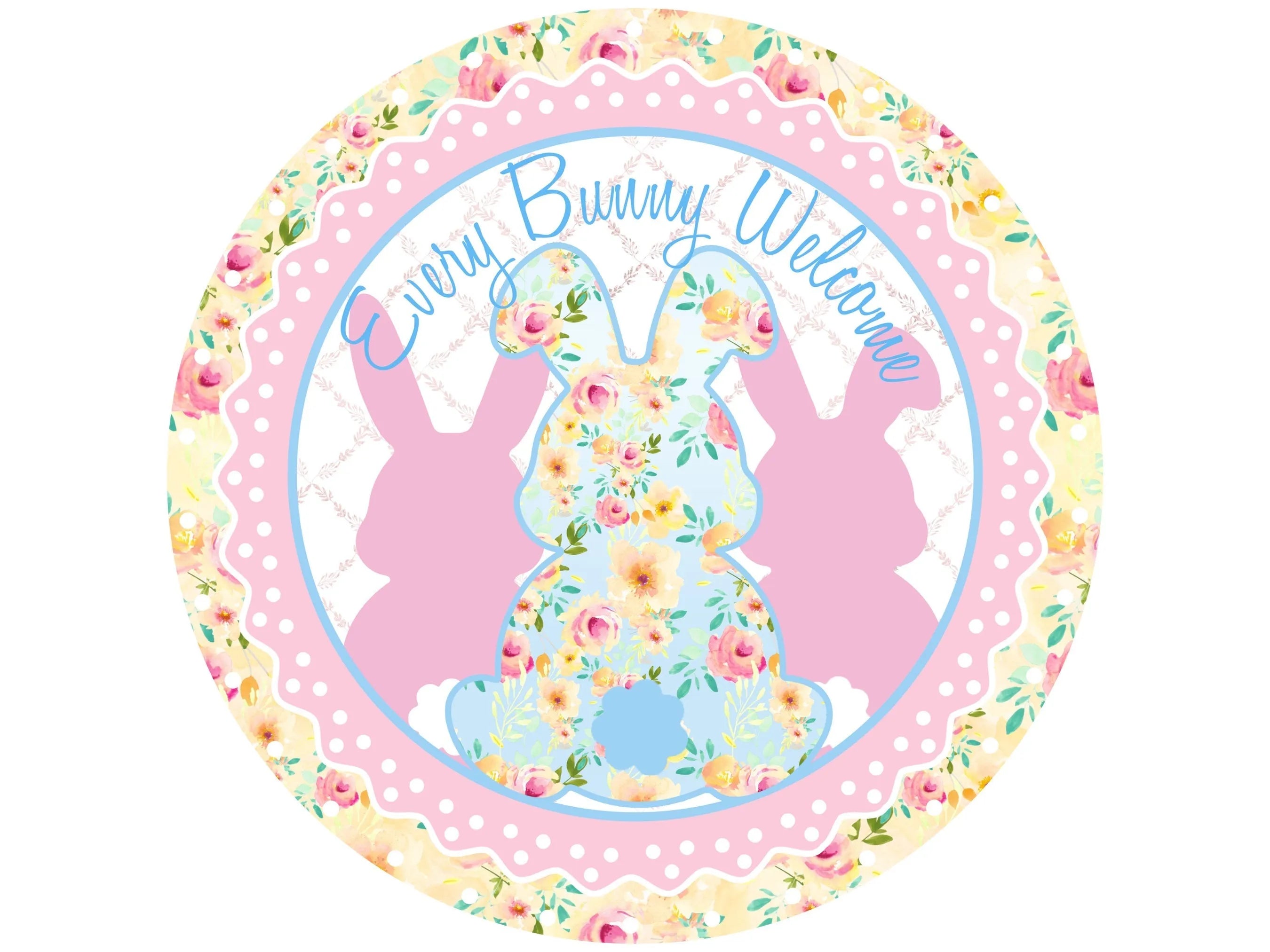 Letrero de corona de trasero de conejito de Pascua con lunares florales, arte de pared floral de trasero de conejito, accesorio de corona de conejito de Pascua, decoración de fiesta de Pascua
