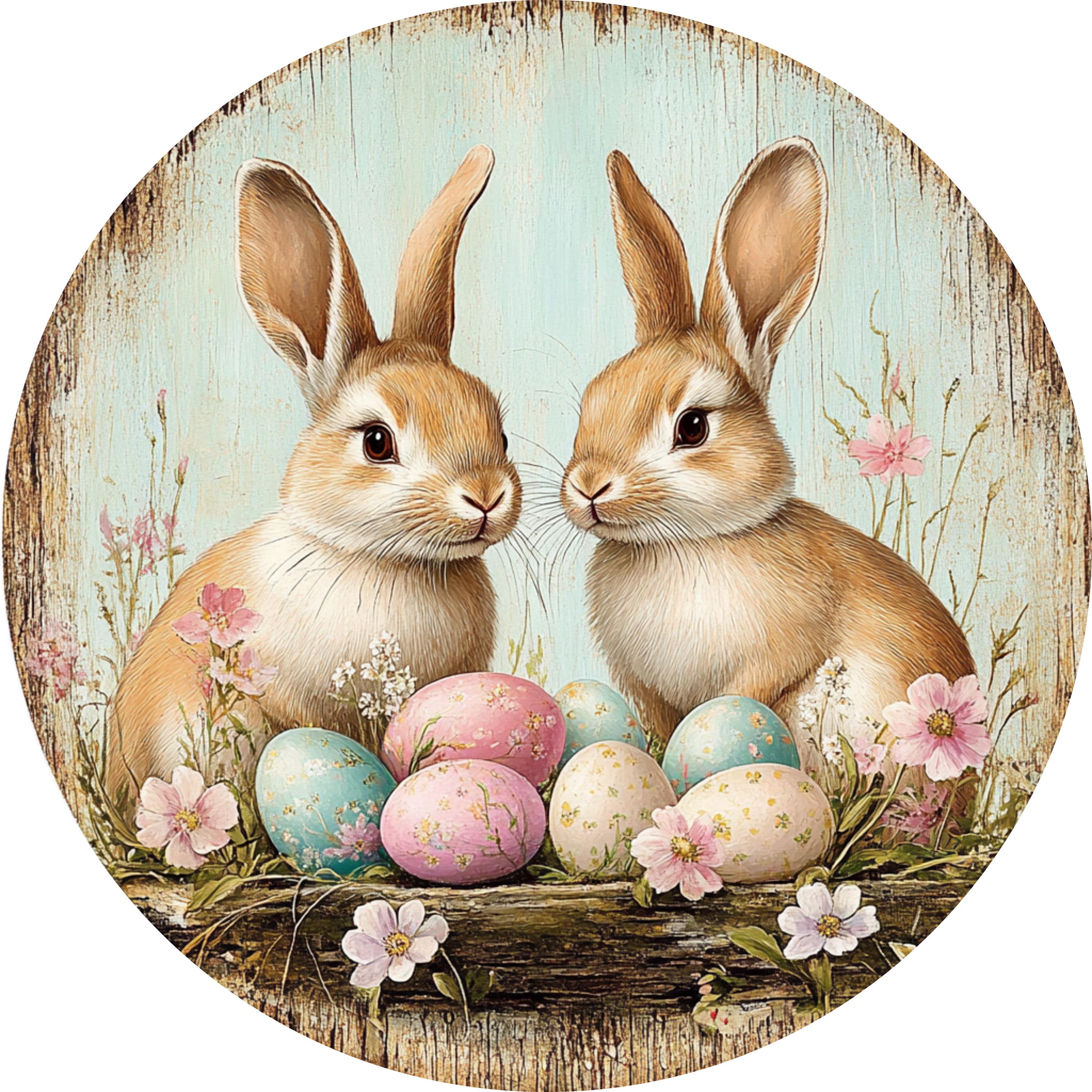 Letrero rústico de conejo de Pascua, decoración vintage de primavera, decoración rústica de Pascua, arte mural de conejo desgastado, letrero de madera con huevos de Pascua en tonos pastel