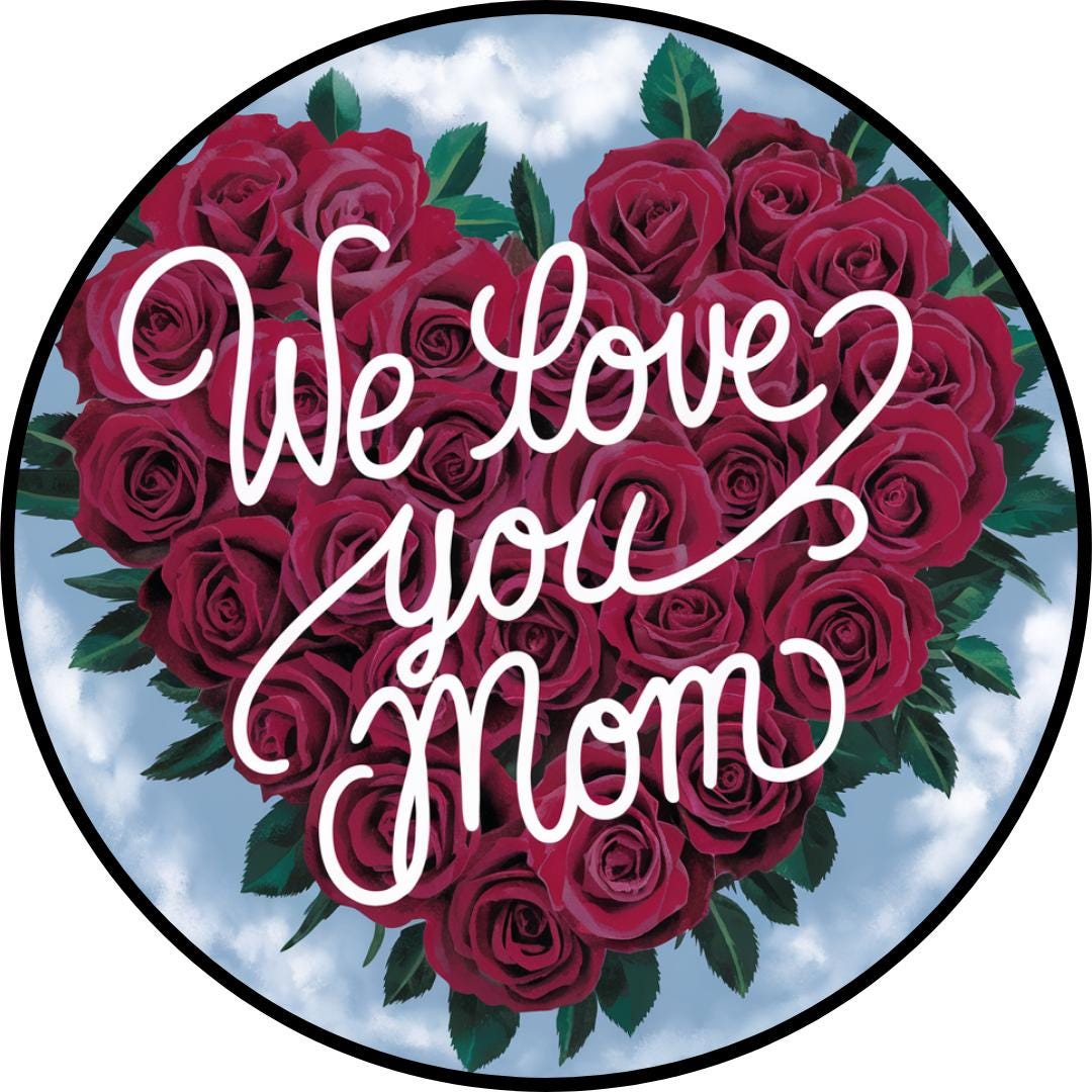 Letrero "Te amamos, mamá", decoración para el Día de la Madre con forma de corazón de rosas, arte mural con rosas rojas, idea de regalo para mamá, letrero floral romántico para el Día de la Madre.