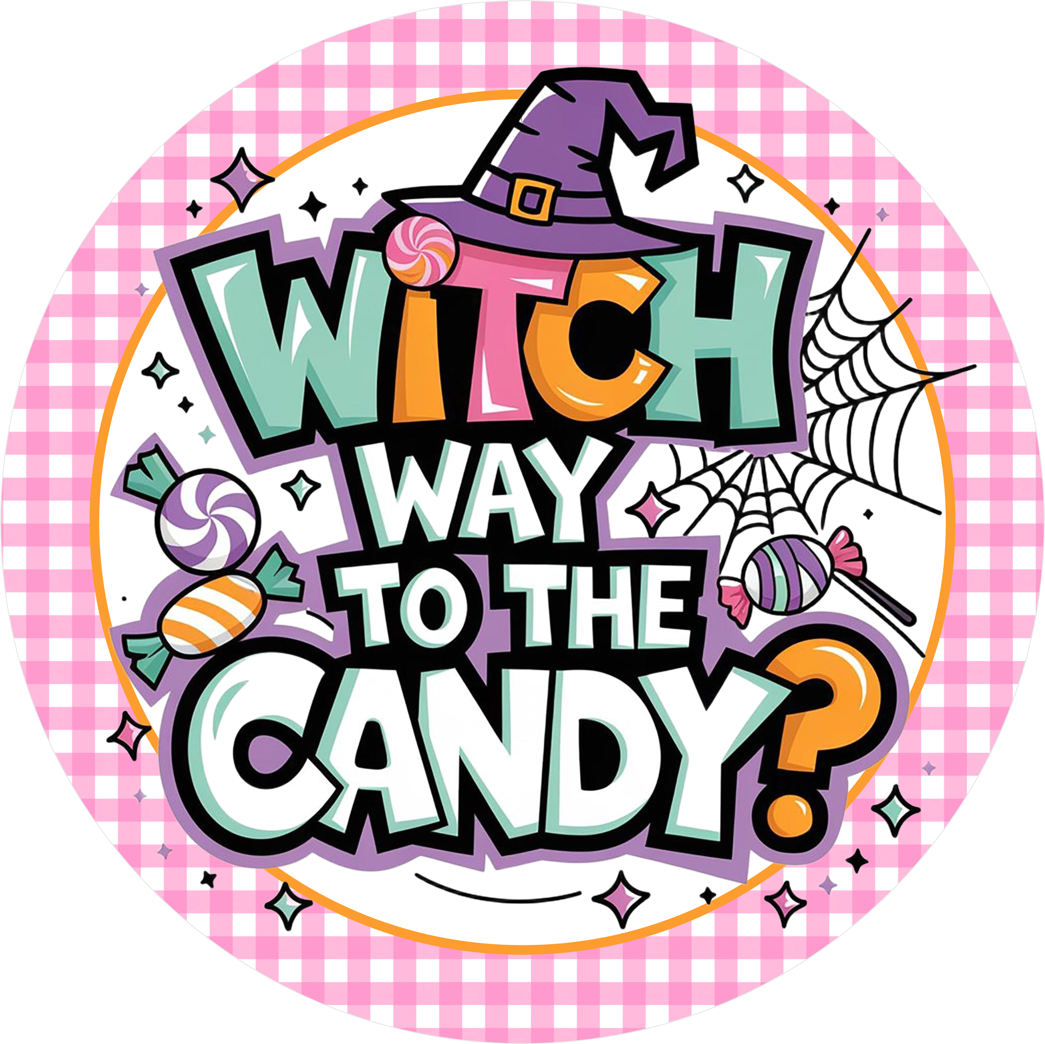 Dale un toque divertido a tus creaciones de Halloween con este colorido letrero "¿Camino de las Brujas a los Dulces?". ¡Perfecto para coronas, estaciones de dulces o decoración festiva para puertas!