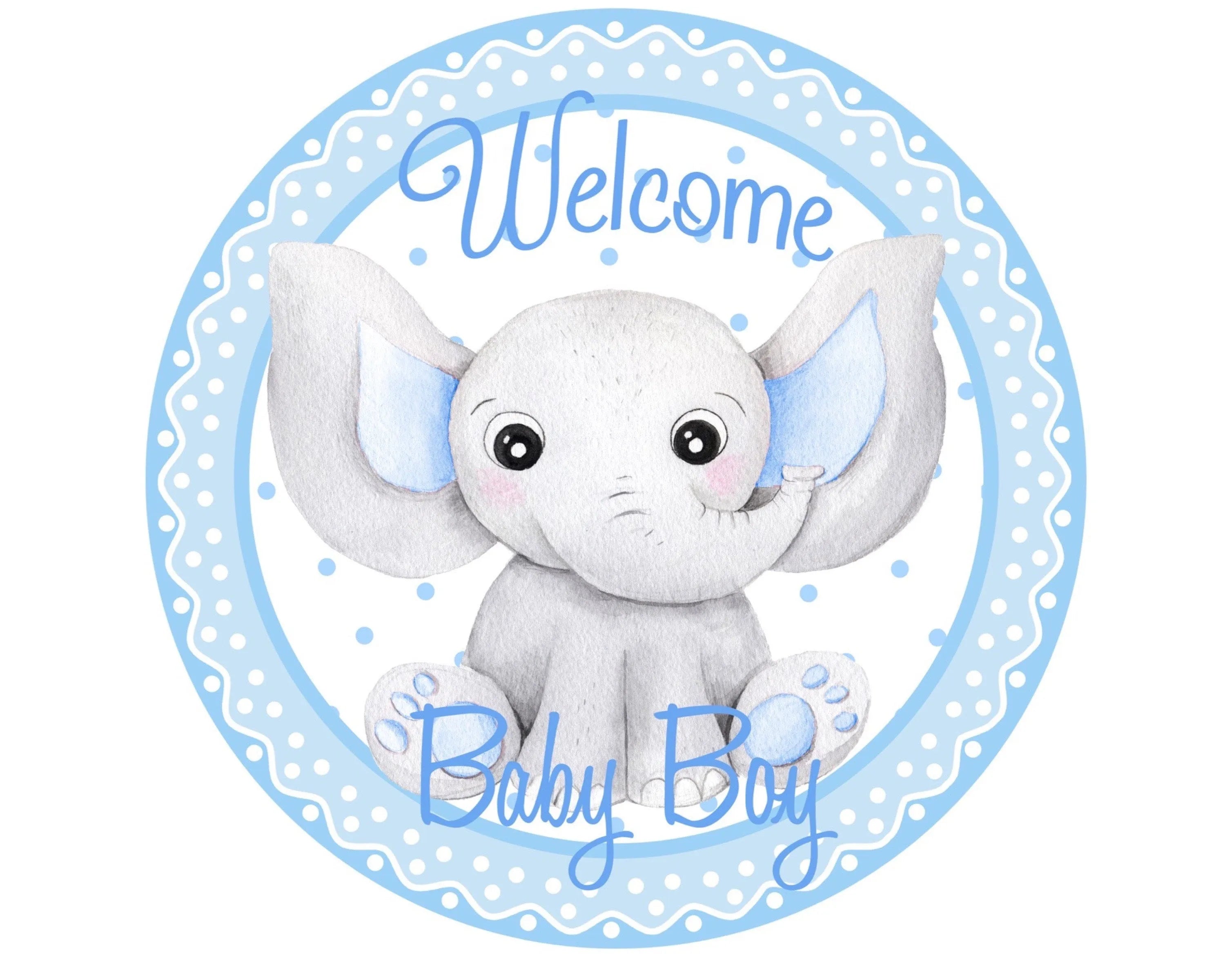 Blue Baby Elephant Sign, baby nursery decor, baby shower party, kids room sign, blue boys room decor, welcome baby sign, welcome baby boy