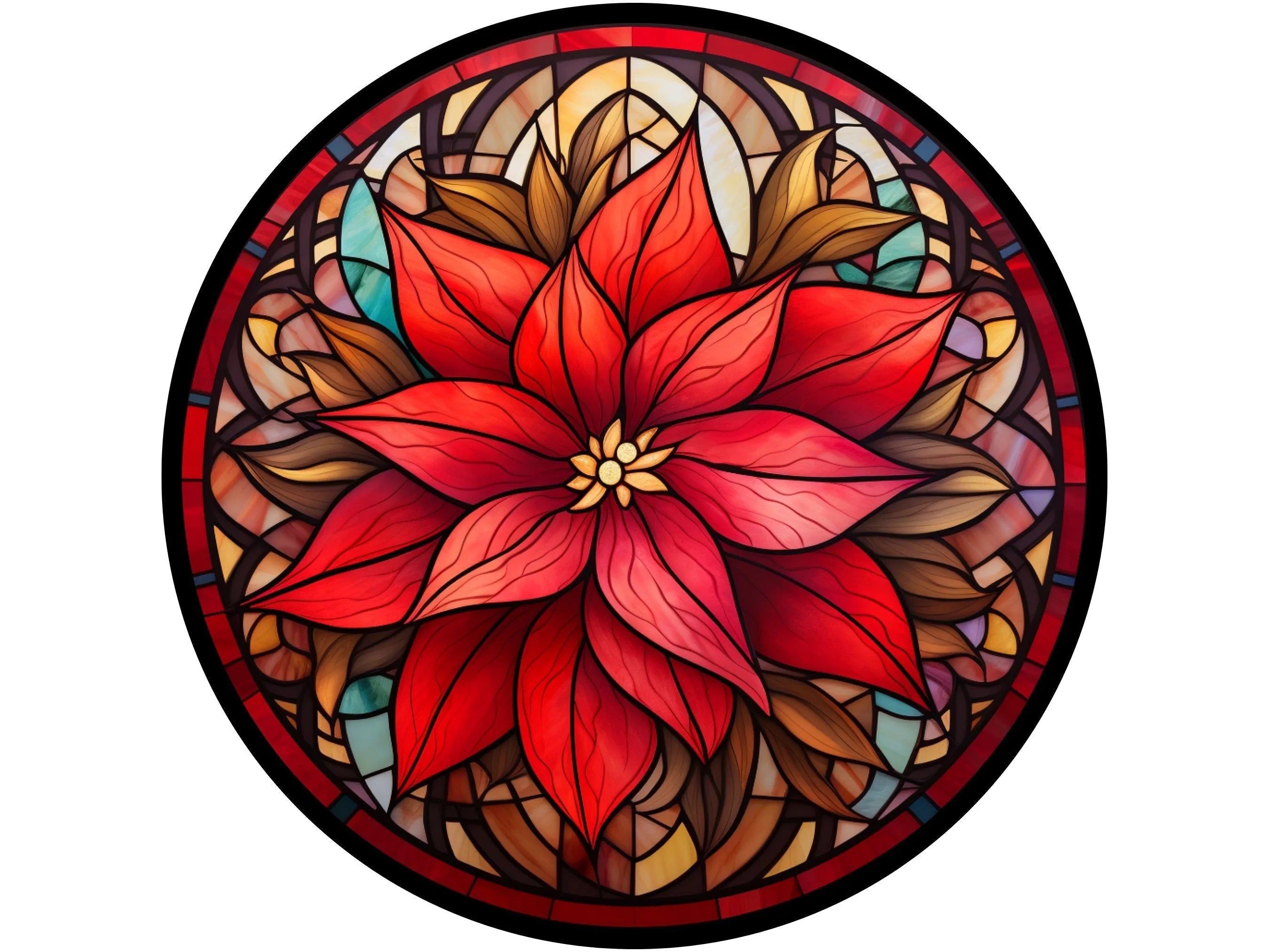 Christmas poinsettia stained glass sign, (2), poinsettia stained glass sign, sign for Christmas, Christmas church window sign