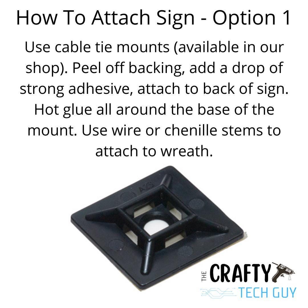 This lightweight and affordable sign is designed specifically with wreath makers in mind. Signs can easily be attached to your deco mesh or grapevine wreaths by adding holes with a metal jewelry punch (available in our shop, just search for "jewelry punch") or super gluing/hot gluing cable mounts (available in our shop, just search for "cable mounts") to the back of the sign.