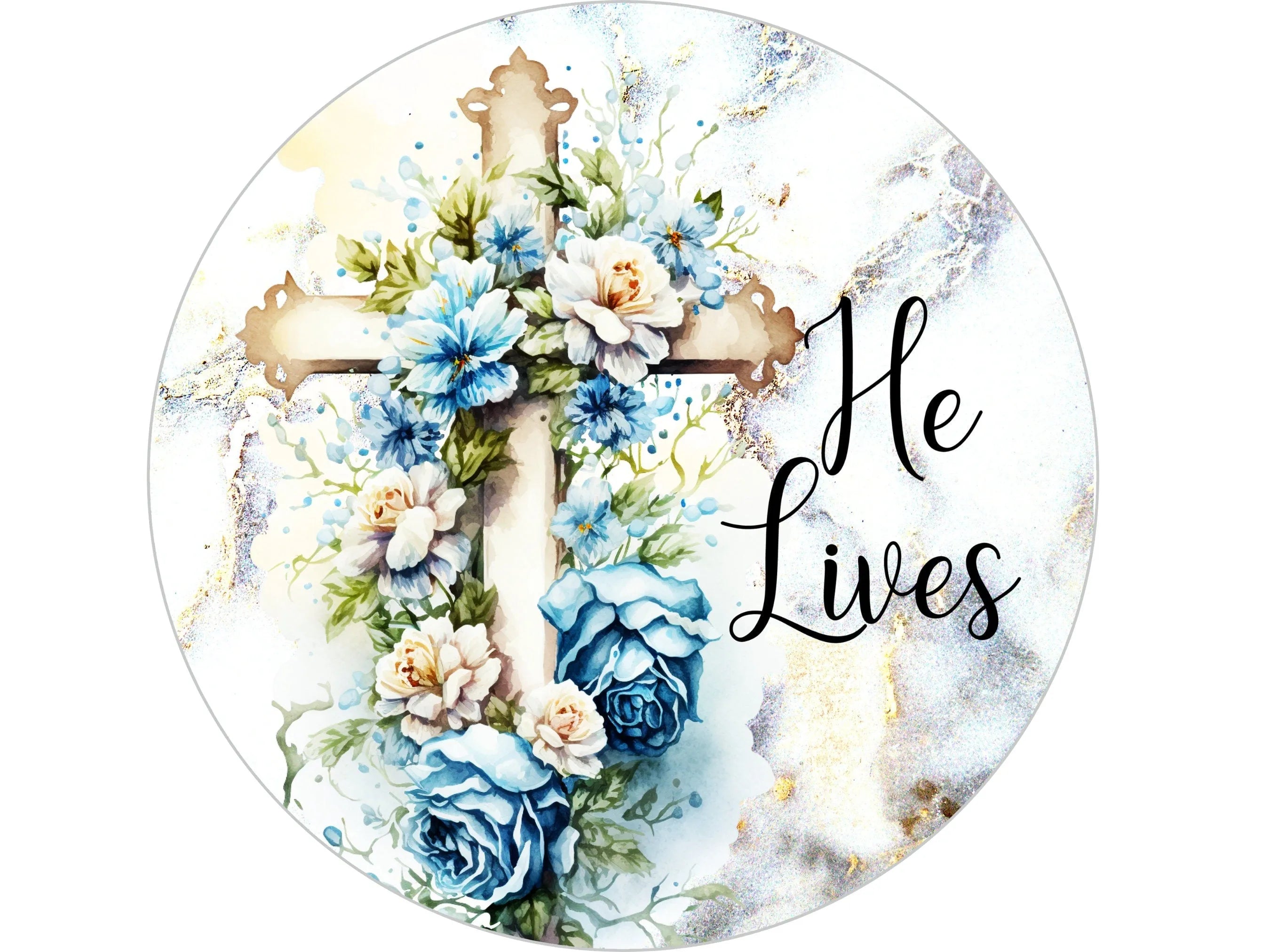 elegant floral cross He Lives wreath sign, floral religious wooden cross decor, church sign, Easter sign
