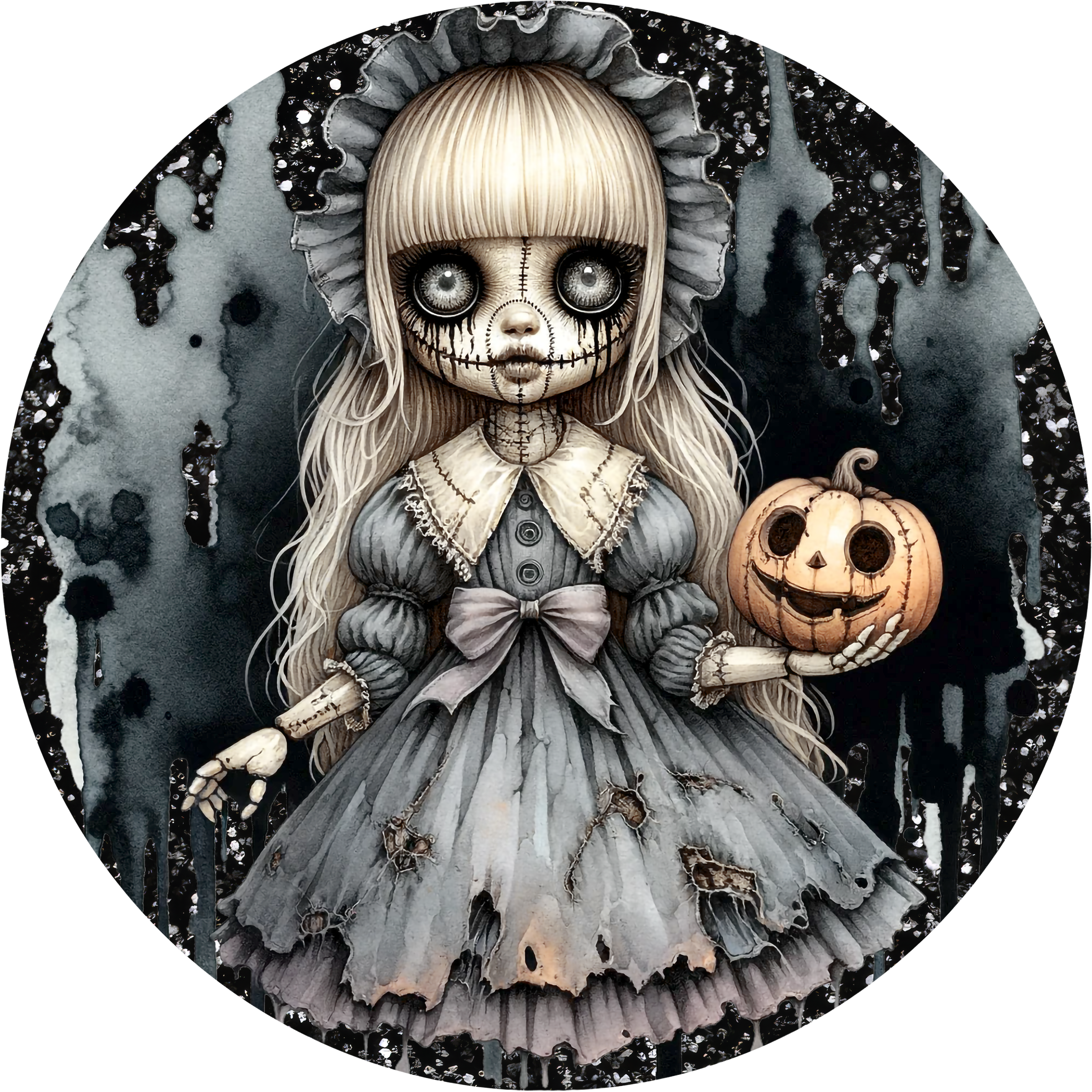 Creepy Doll Halloween Sign, Haunted Victorian Pumpkin Decor, Spooky Gothic Wall Art