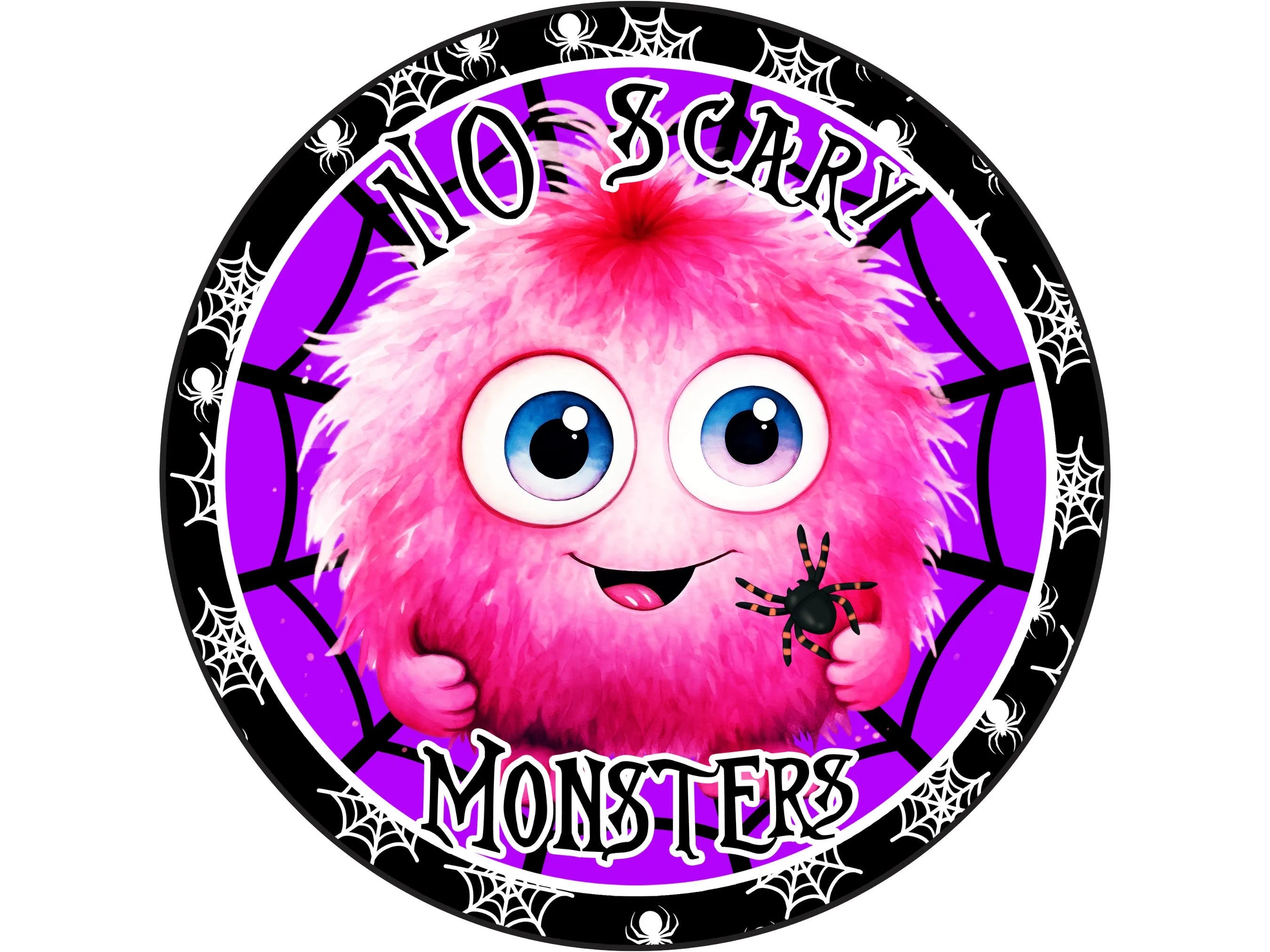 pink furry monster with spiders metal wreath sign, sign for Halloween, sign for October