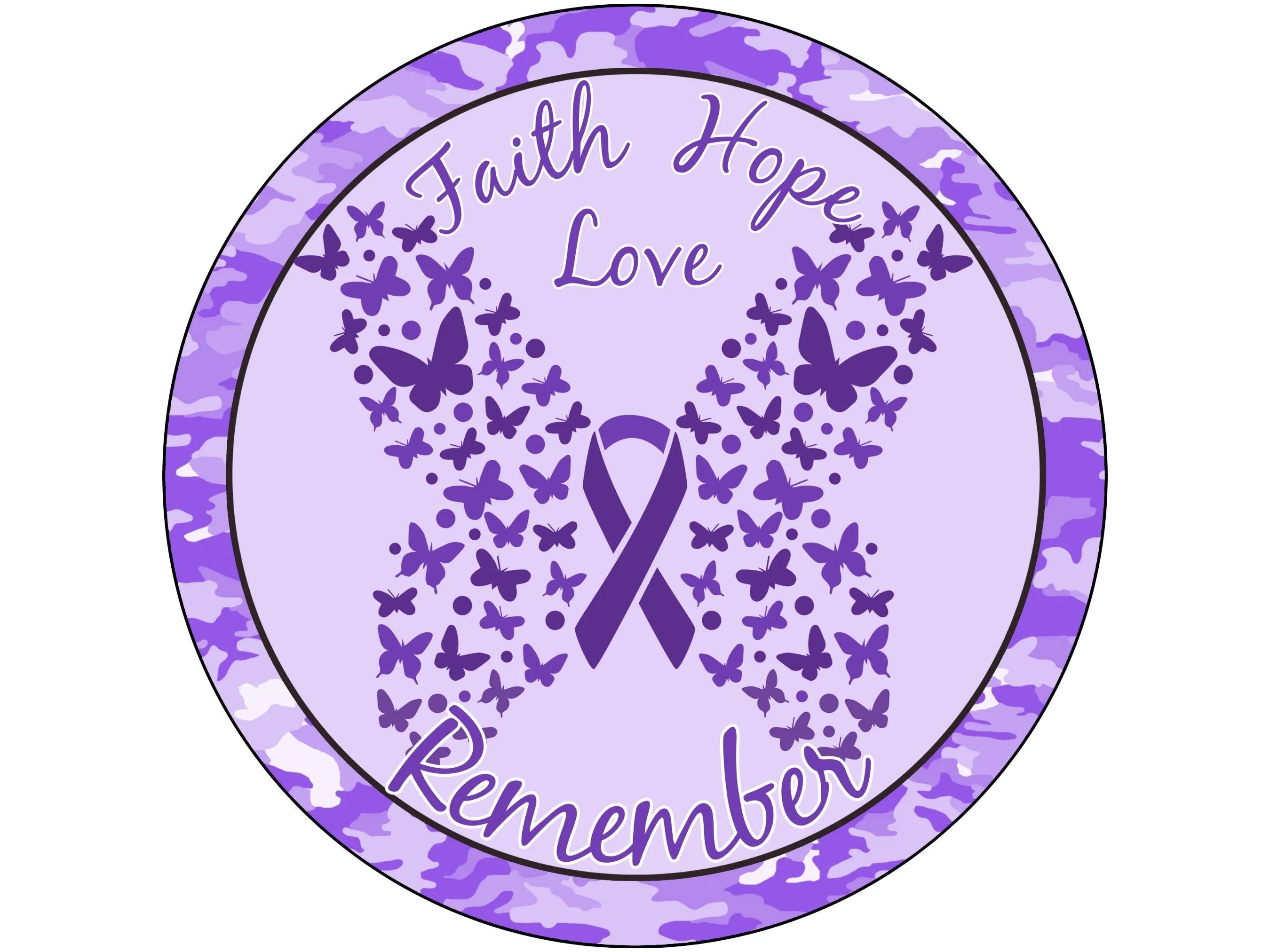 purple butterfly Alzheimer's Awareness ribbon wreath sign, sign for June, memory support wreath attachment