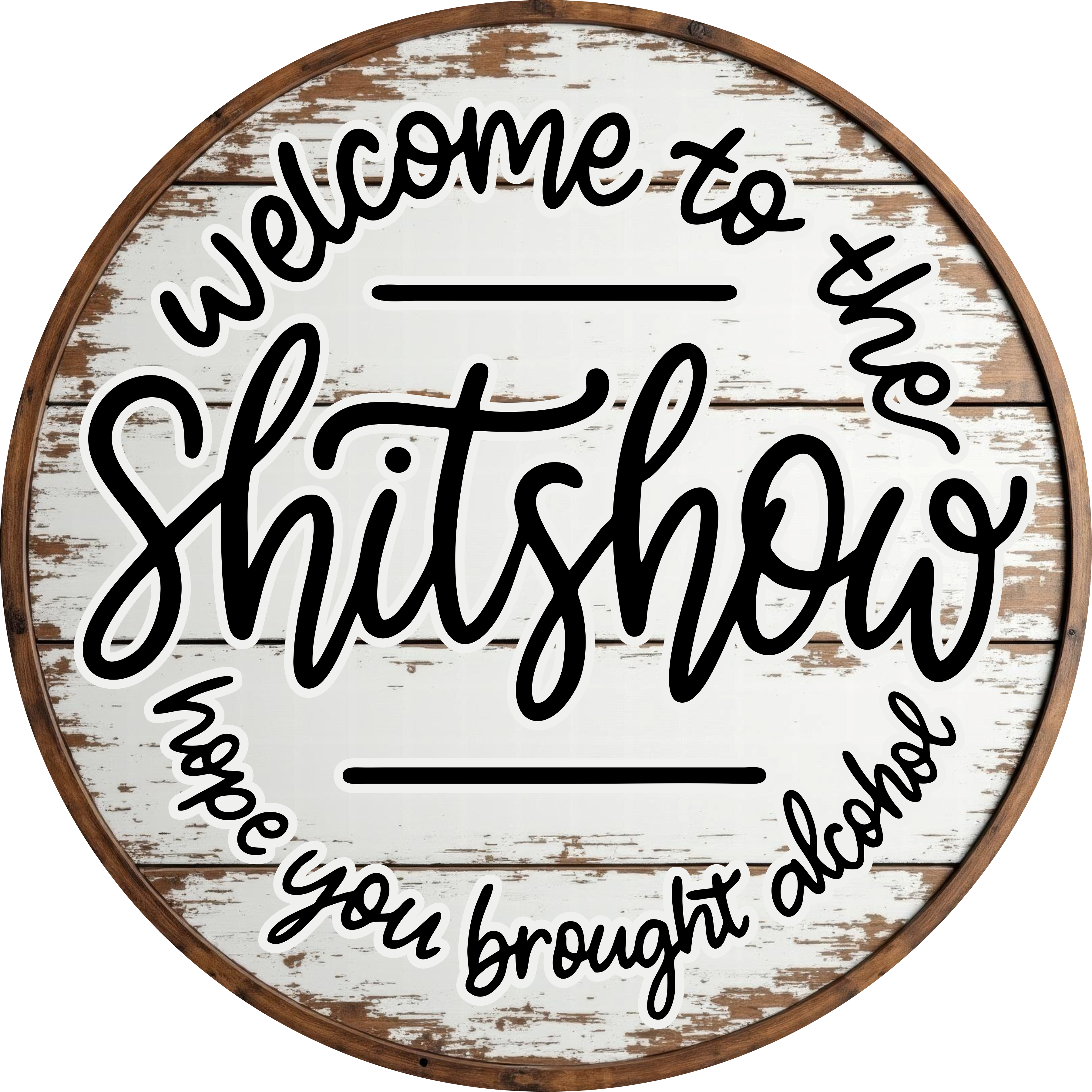 Keep it real with this hilarious "Welcome to the Shitshow" sign—perfect for anyone whose home is equal parts chaos and charm. With a distressed wood-style background and bold black lettering, this sign adds a splash of sarcasm to any entryway, wreath, bar area, or she-shed.